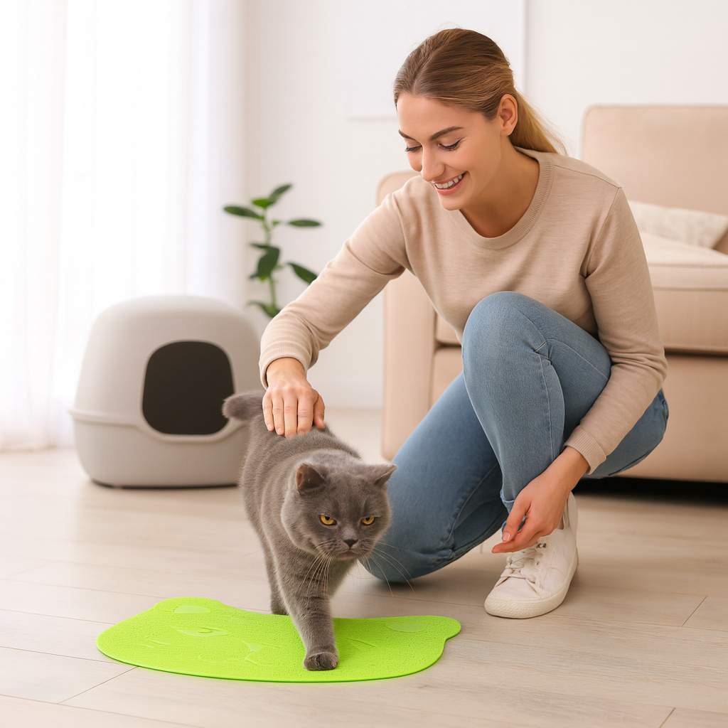 - Let your cat step on the mat after using the litter box to capture stray litter.