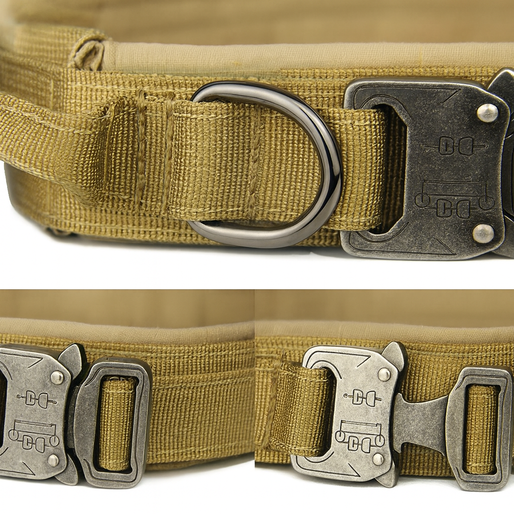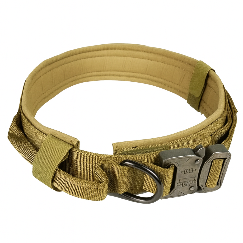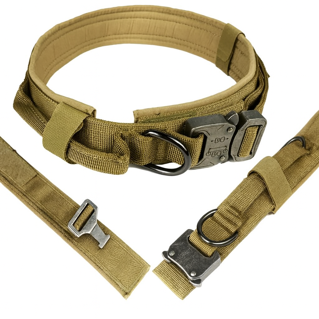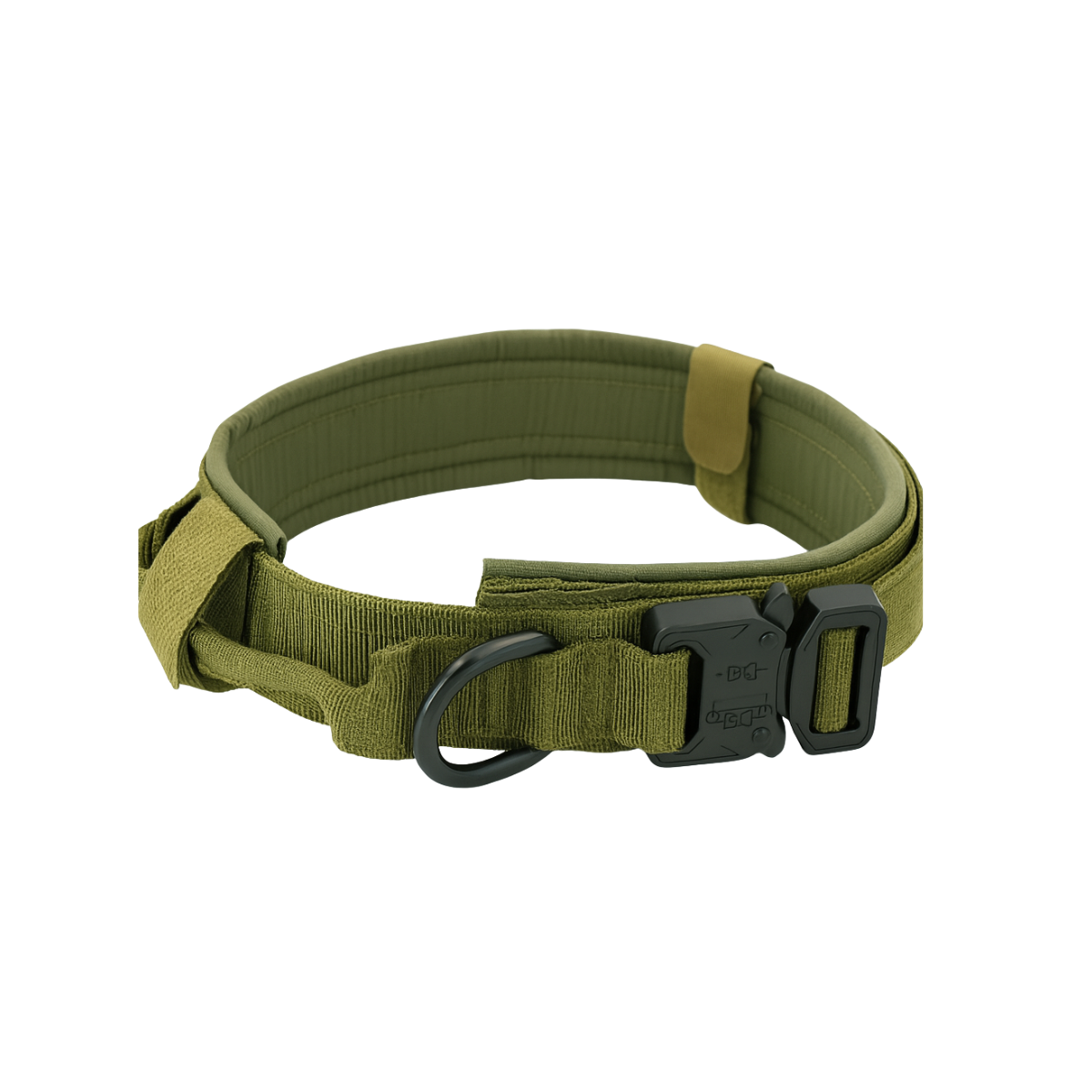 Designed for strength, comfort, and full control, the Durable Military Tactical Dog Collar is a must-have for pet owners who need performance-grade gear. Built with high-quality reinforced nylon, soft padded lining, and heavy-duty metal hardware, this collar offers unmatched durability and comfort for medium to large dogs. Ideal for training, walking, or tactical use, this collar features a quick-grab handle to maintain control during road crossings, vet visits, or crowded areas. The adjustable fit ensures a snug yet comfortable hold, while the double-lock metal buckle provides added security and peace of mind. Whether you're at home, out for a hike, or on duty, this tactical collar is up for the challenge.