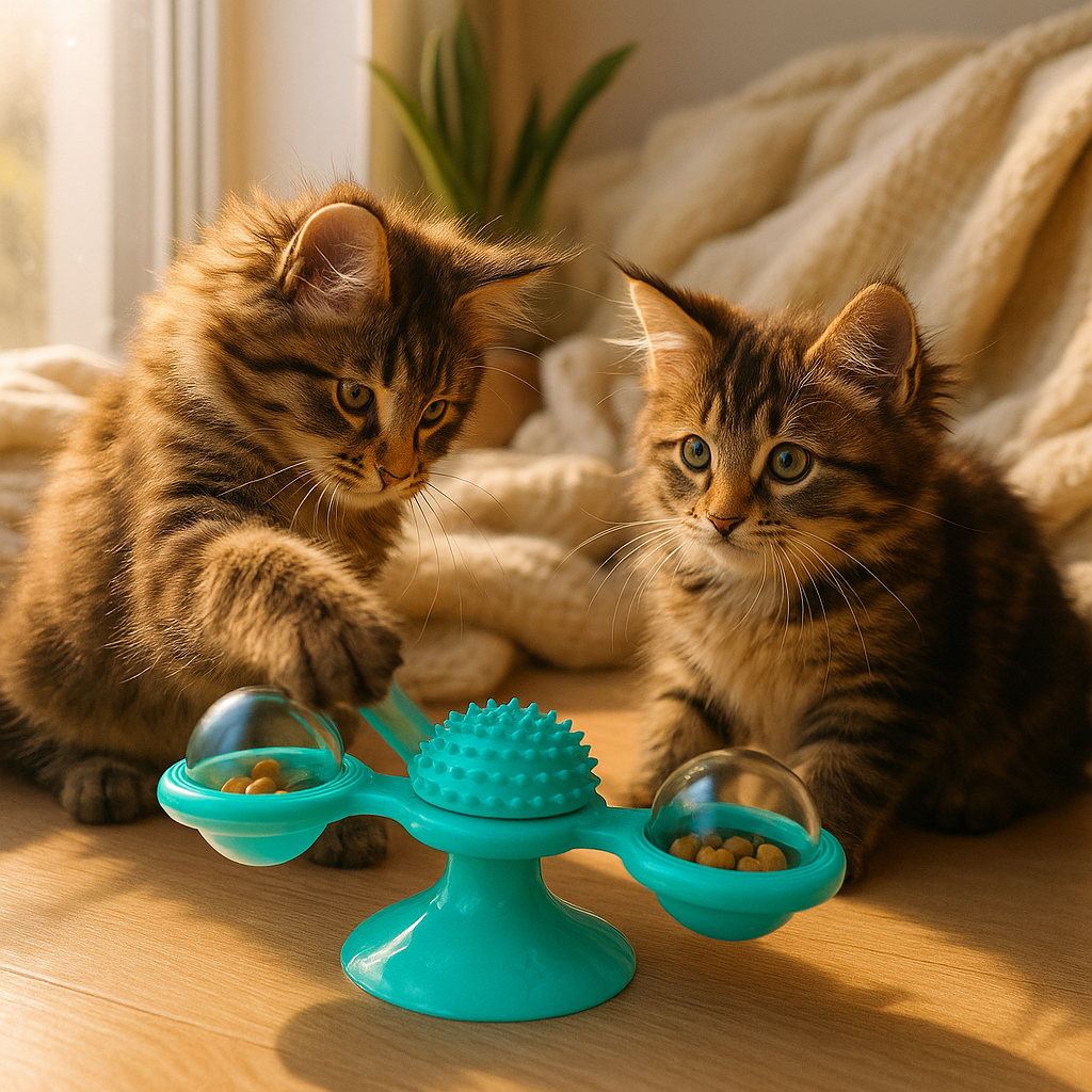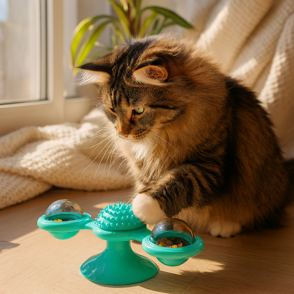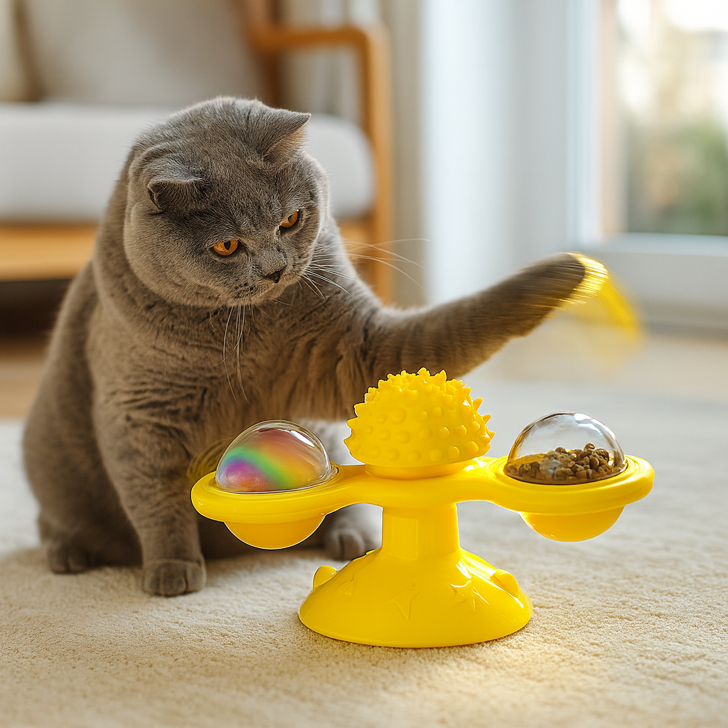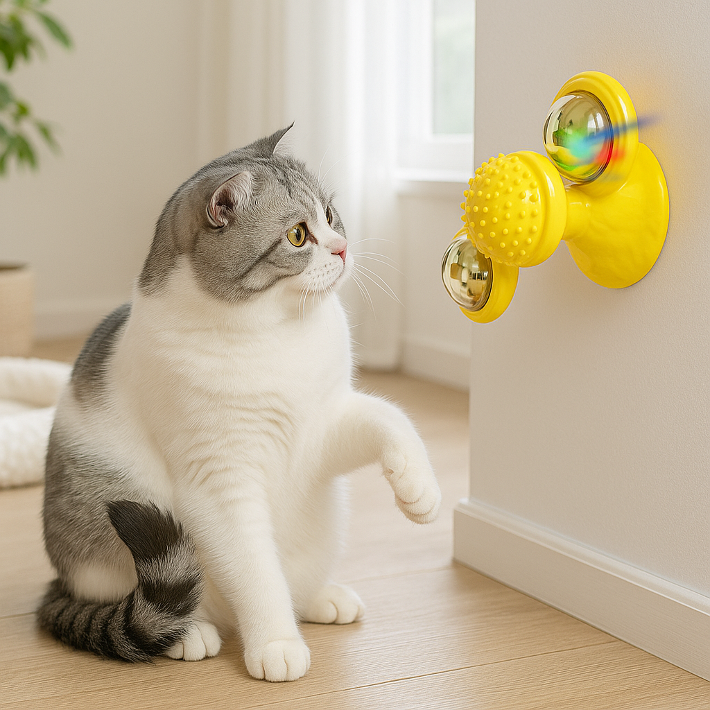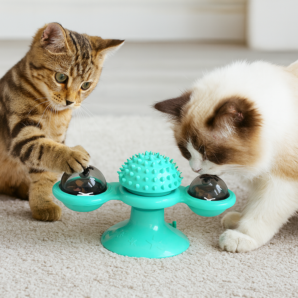 Its unique spinning windmill design encourages active play while the textured center promotes teeth cleaning and facial massage, offering wellness benefits with every spin. Whether you're at home or away, this toy provides hours of solo entertainment, making it the perfect gift for playful and energetic cats.