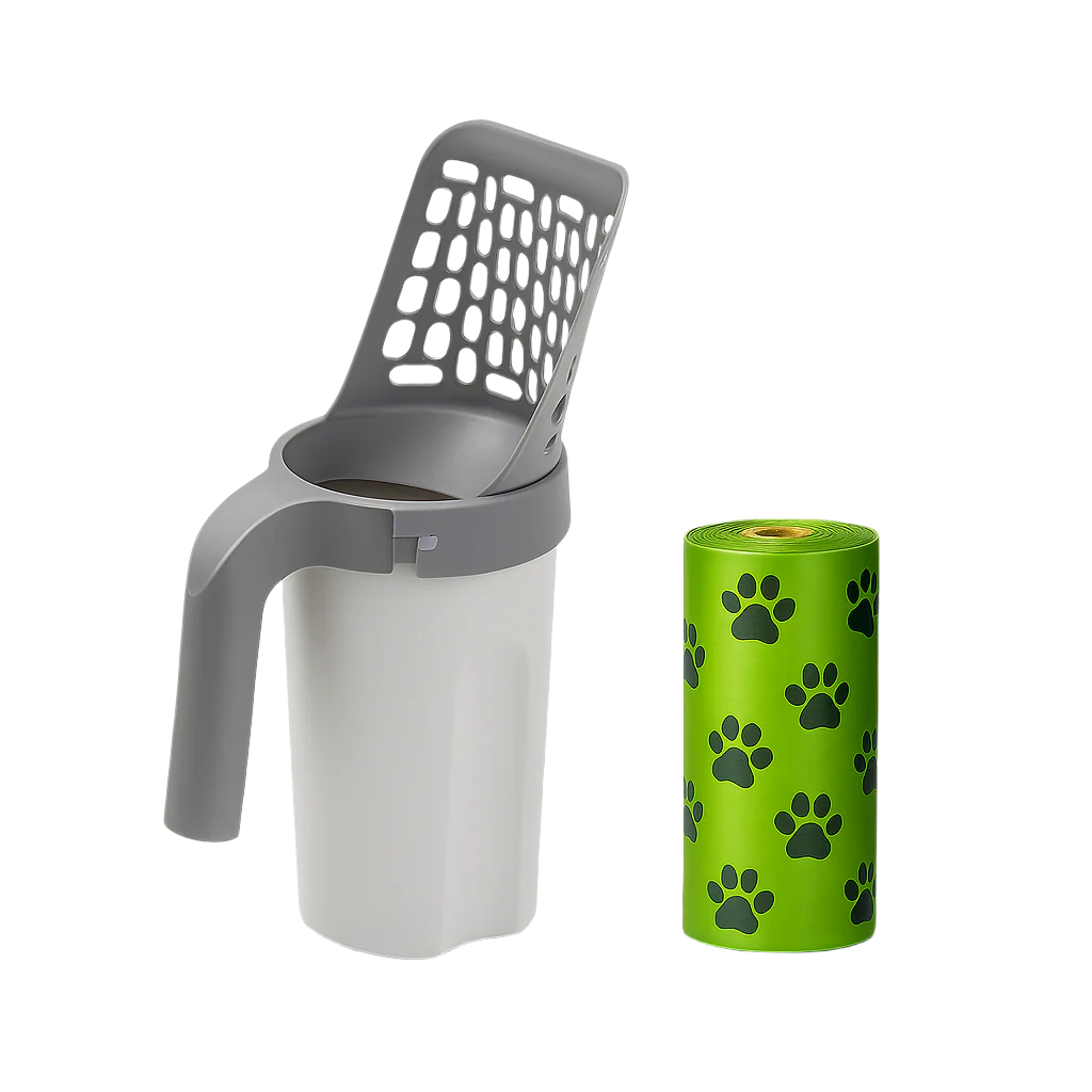 The 2-in-1 Cat Litter Scooper with Built-In Trash Holder & Poop Bag Dispenser