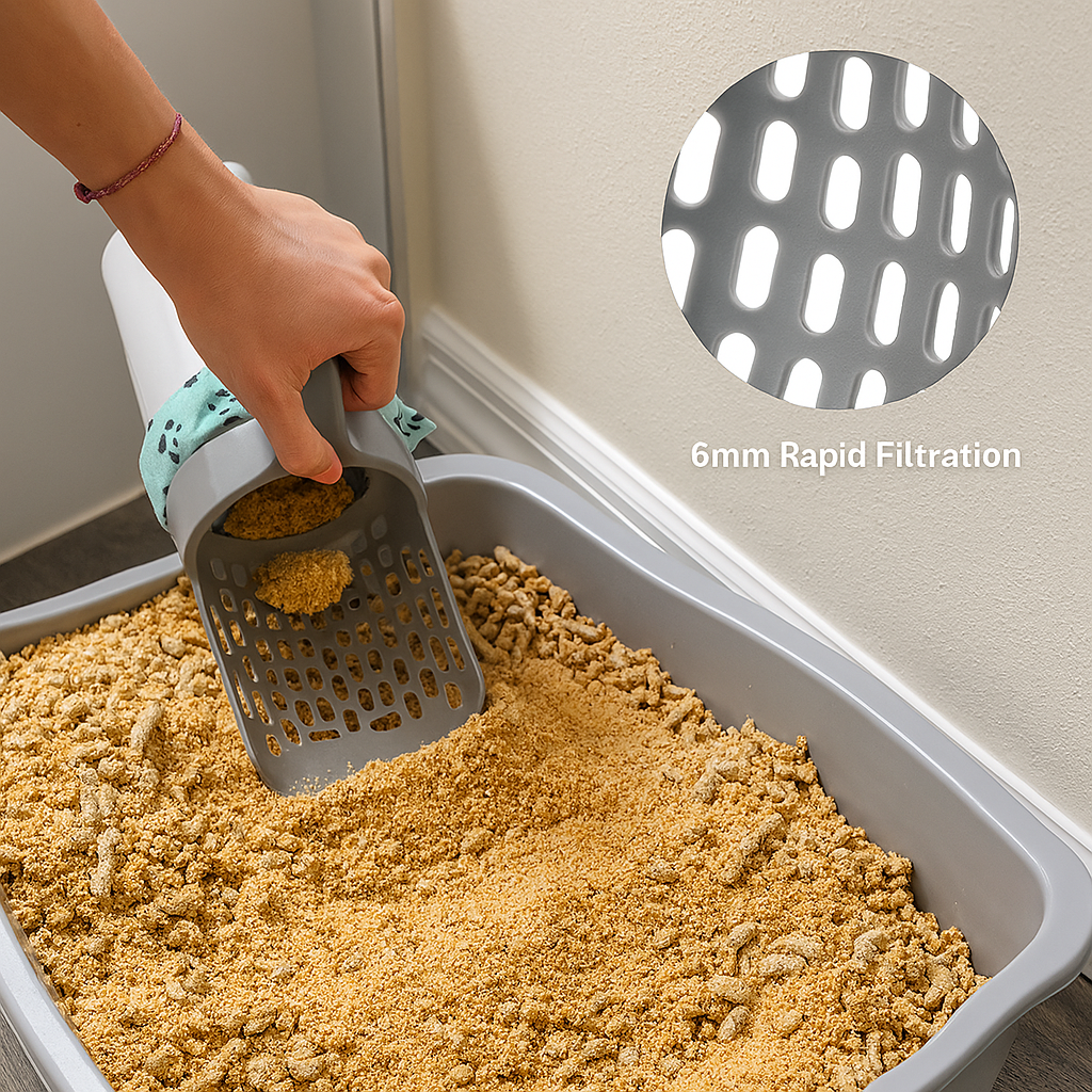 - Fine-Mesh Sifter – Filters out clean litter while trapping even the smallest clumps for a spotless box.
