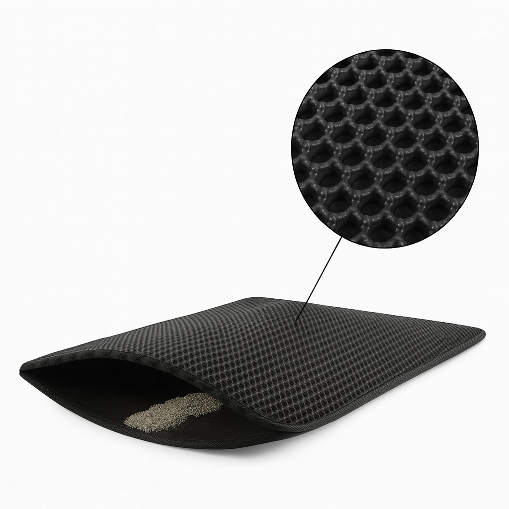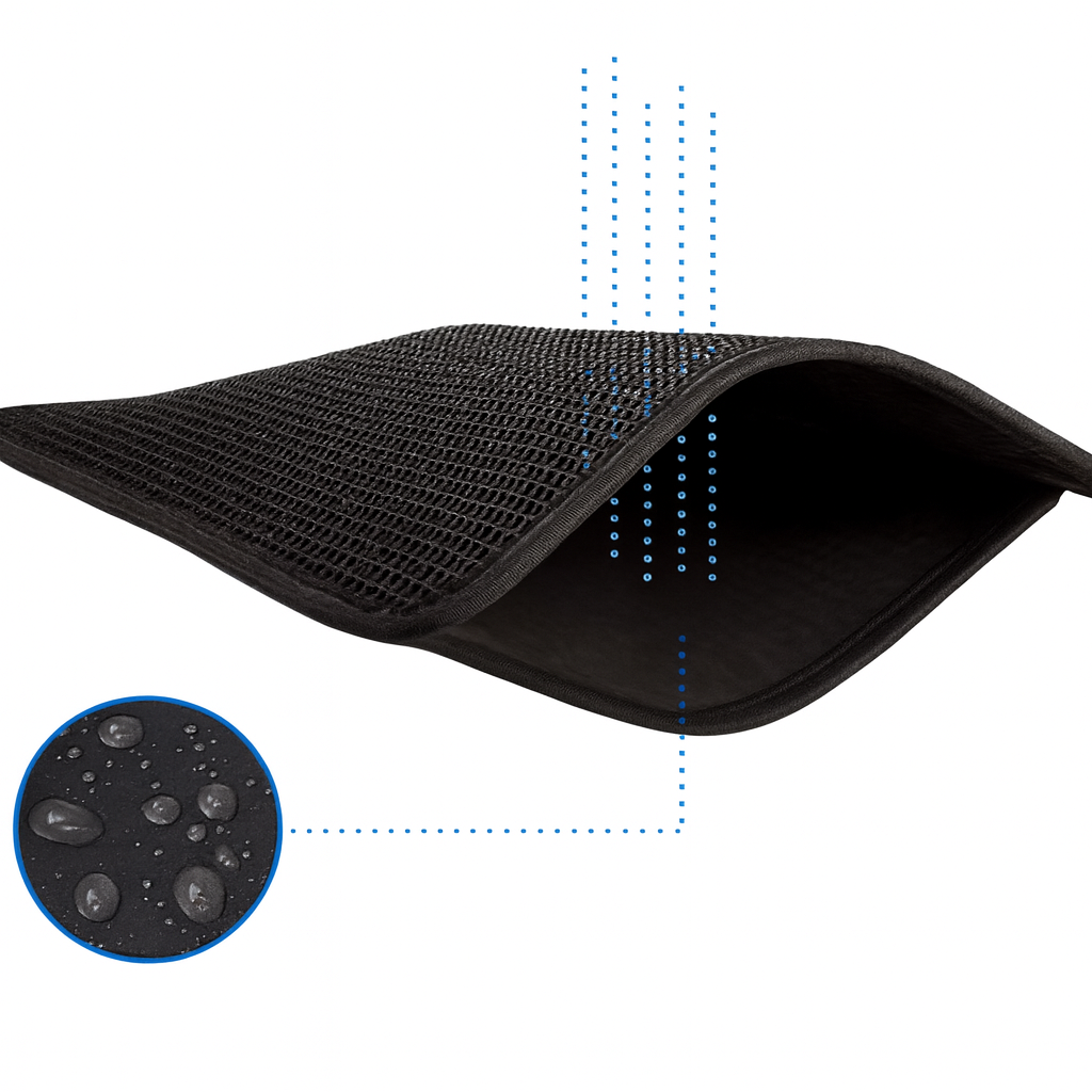 Double Layer Waterproof Litter Trapping Mat for Cats, Non-Slip, Easy Clean, Soft EVA Material, 21” x 14”, Black