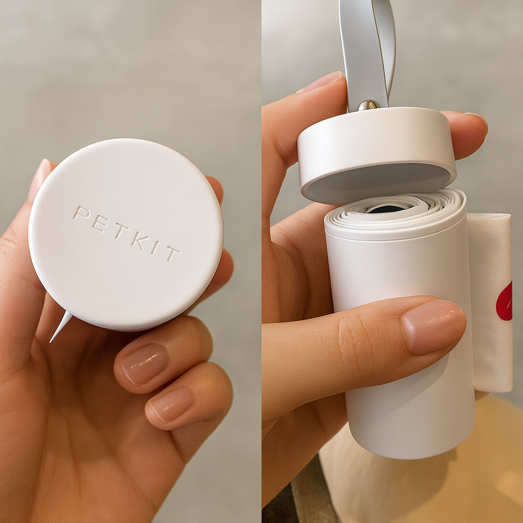 The PETKIT Waste Bag Dispenser combines functionality with style. Its compact, lightweight design makes it perfect for walks, hikes, or trips to the park. Each refillable roll contains 15 large, durable waste bags - big enough to protect your hands while picking up after your pet. Unscrew the top to replace rolls in seconds. No more fumbling with thin, smelly bags - the PETKIT system makes clean-up quick, hygienic, and environmentally responsible.