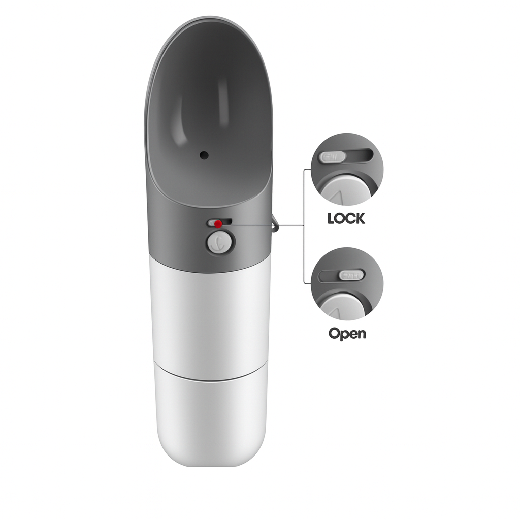 - 1x Rover Pet Travel Bottle (Grey) with built-in bowl and compartments